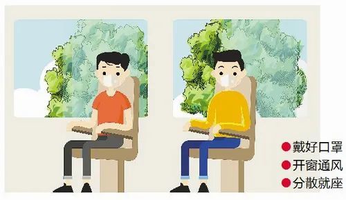 乘坐公交车时,乘客之间尽量保持安全社交距离,可选择分散就座或站立;如果恰逢出行高峰期,车上乘客拥挤,可考虑选择等待下一趟车。