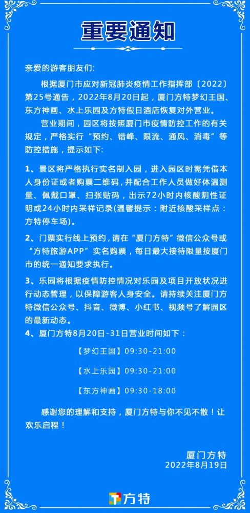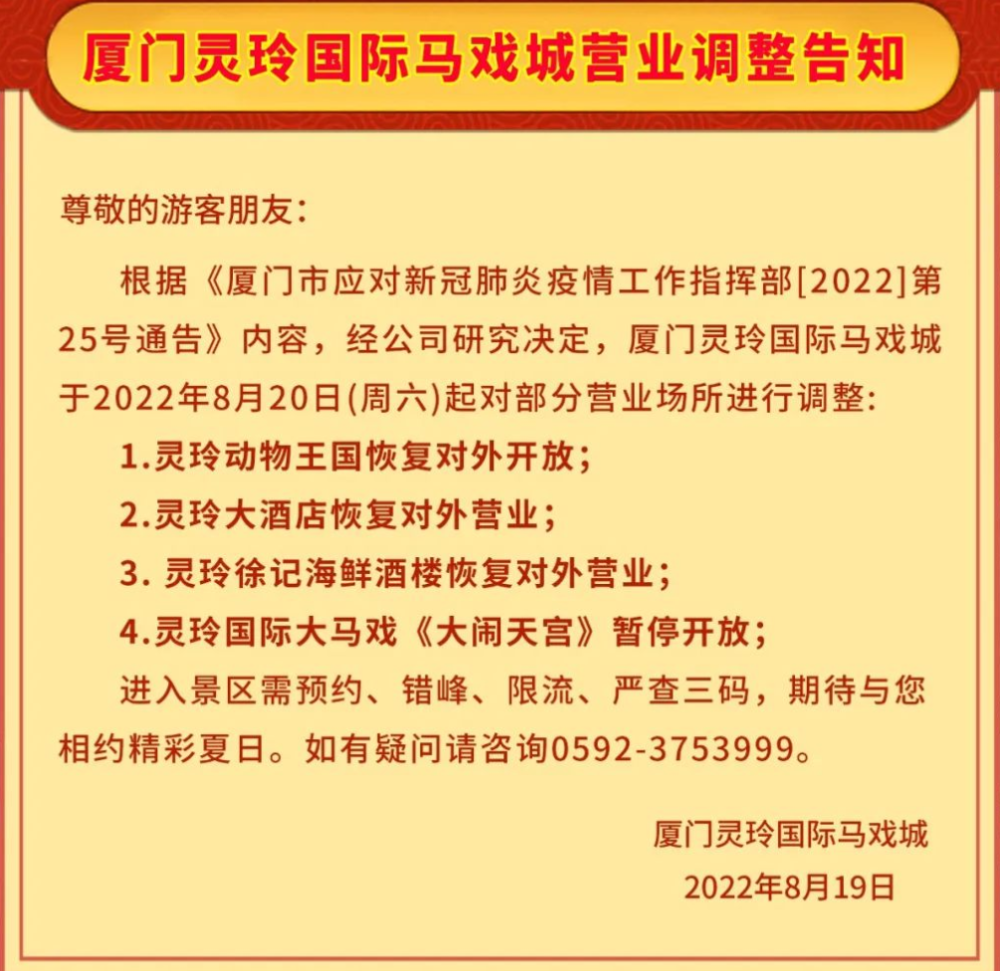 8月20日-22日,全市娱乐场所(含游艺厅、歌舞厅等)、KTV、酒吧、网吧、剧本杀、密室逃脱、洗浴、足浴、温泉、SPA、棋牌室、麻将馆等室内密闭场所继续暂停营业。